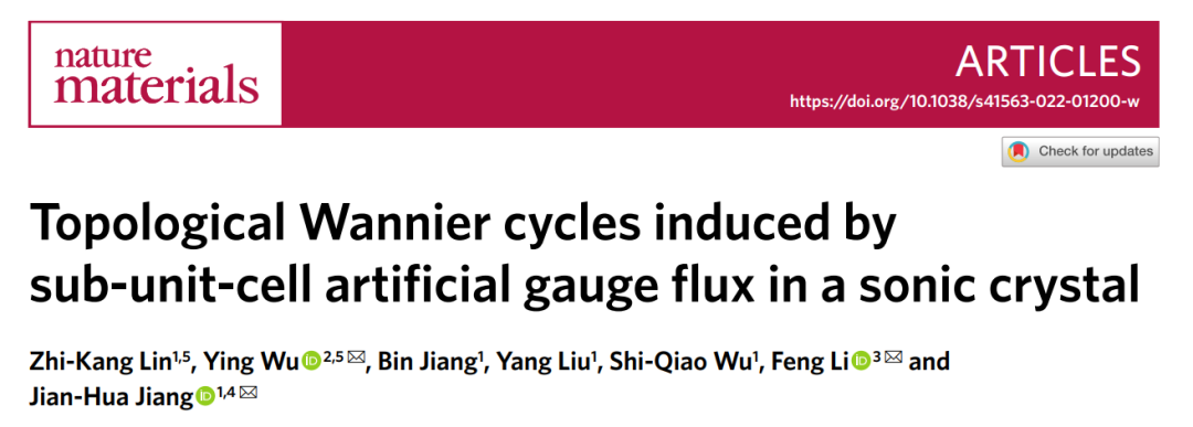 2022年3月22日,苏州大学蒋建华教授团队联合北京成品人和一品二品的区别李锋教授和华南成品人和一品二品的区别吴迎博士,在Nature Materials发表题为Tolological Wannier cycles induced by sub-unit-cell artificial gauge flux in a sonic crystal的文章。研究团队利用3D打印技术,设计了一种具有螺位错的声子晶体,在实验上实现了局域赝磁通和一维拓扑边界态。其物理机制来源于实空间与倒空间的双重拓扑特性。