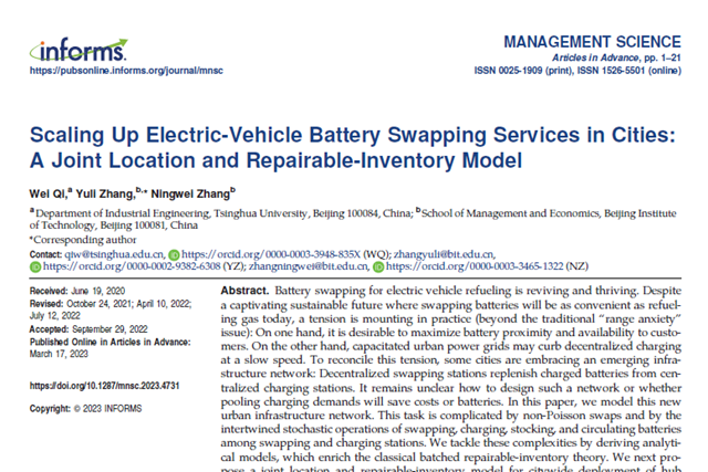 北理工教师在换电模式电动汽车发展方面取得研究...2023-08-07