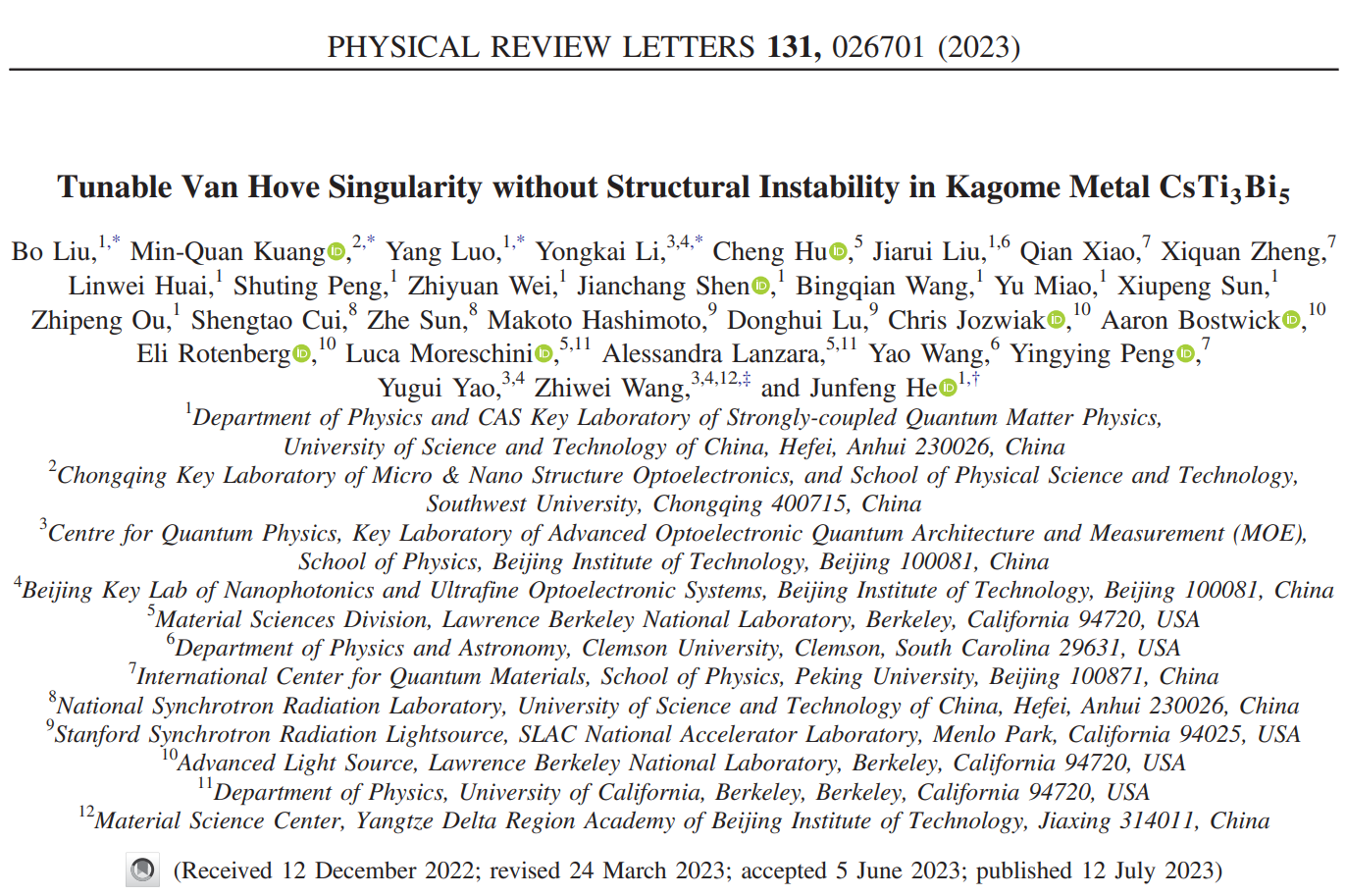 北理工团队在笼目结构超导材料方面取得重要进展2023-09-06