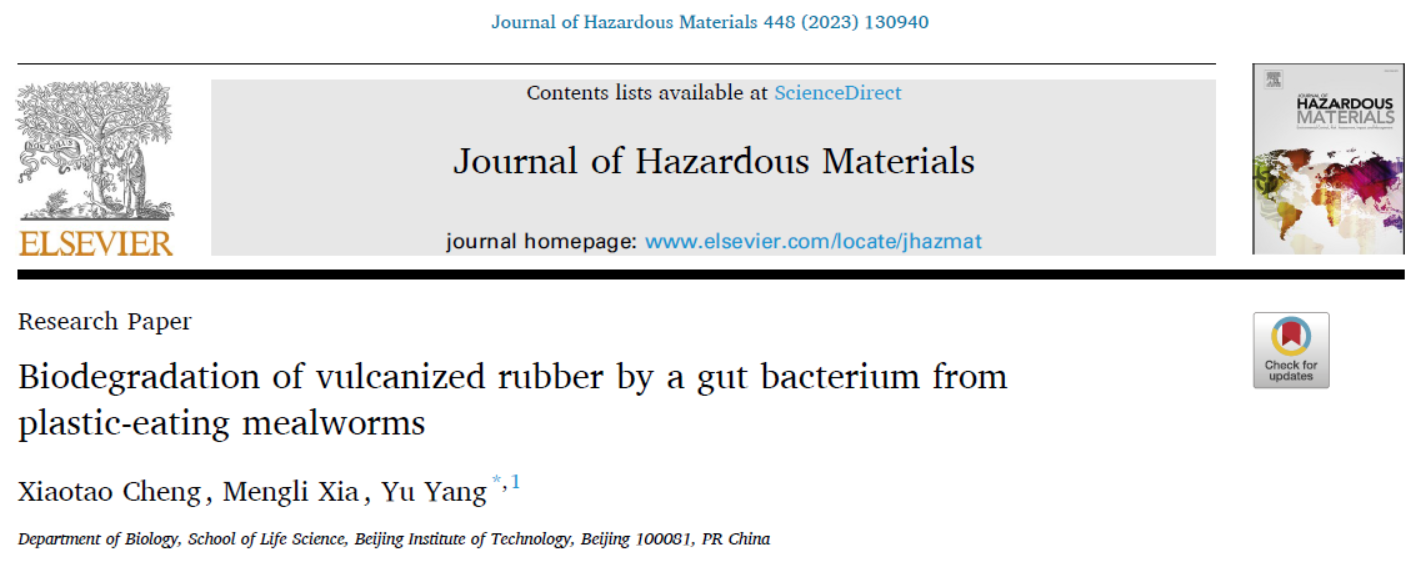 北理工课题组发现硫化橡胶废弃物降解微生物2023-02-28