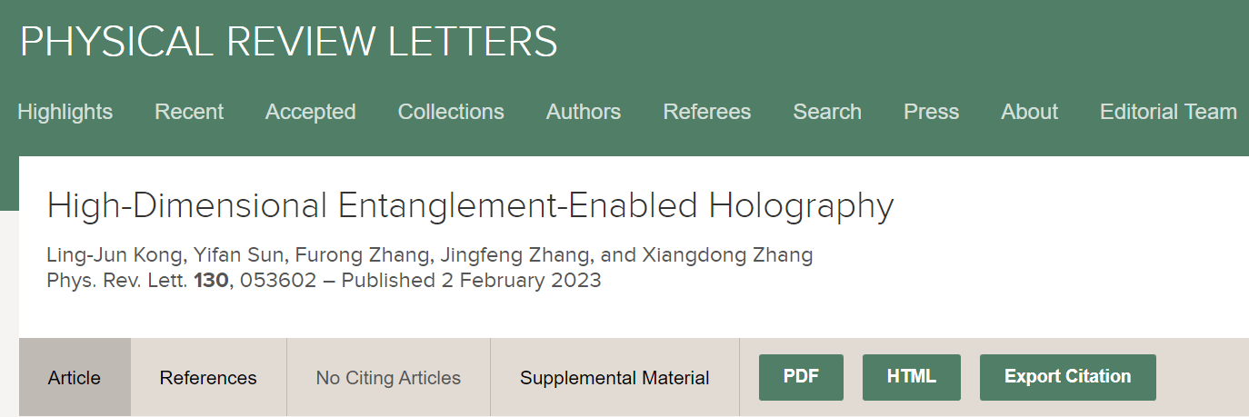 北理工课题组在高维纠缠量子全息和图像安全加密...2023-02-07