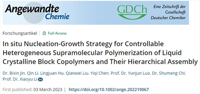 北理工课题组在液晶嵌段共聚物超分子聚合自组装...2023-03-31