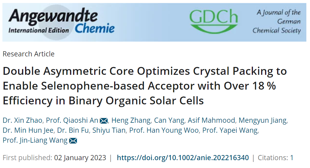 北理工团队在硒吩类有机太阳能电池受体材料方面...2023-04-07