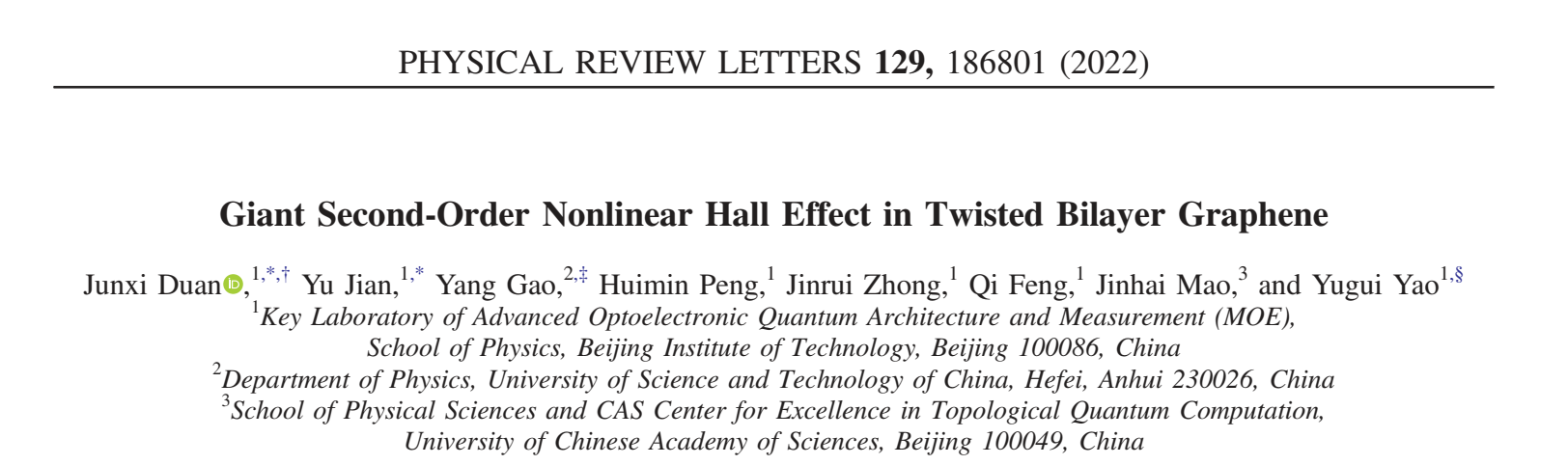 北理工团队在转角石墨烯体系的二阶非线性霍尔输...2022-11-11