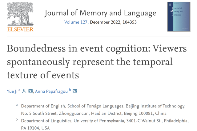 北理工教师在事件结构的语言与认知方面取得研究...2022-12-30